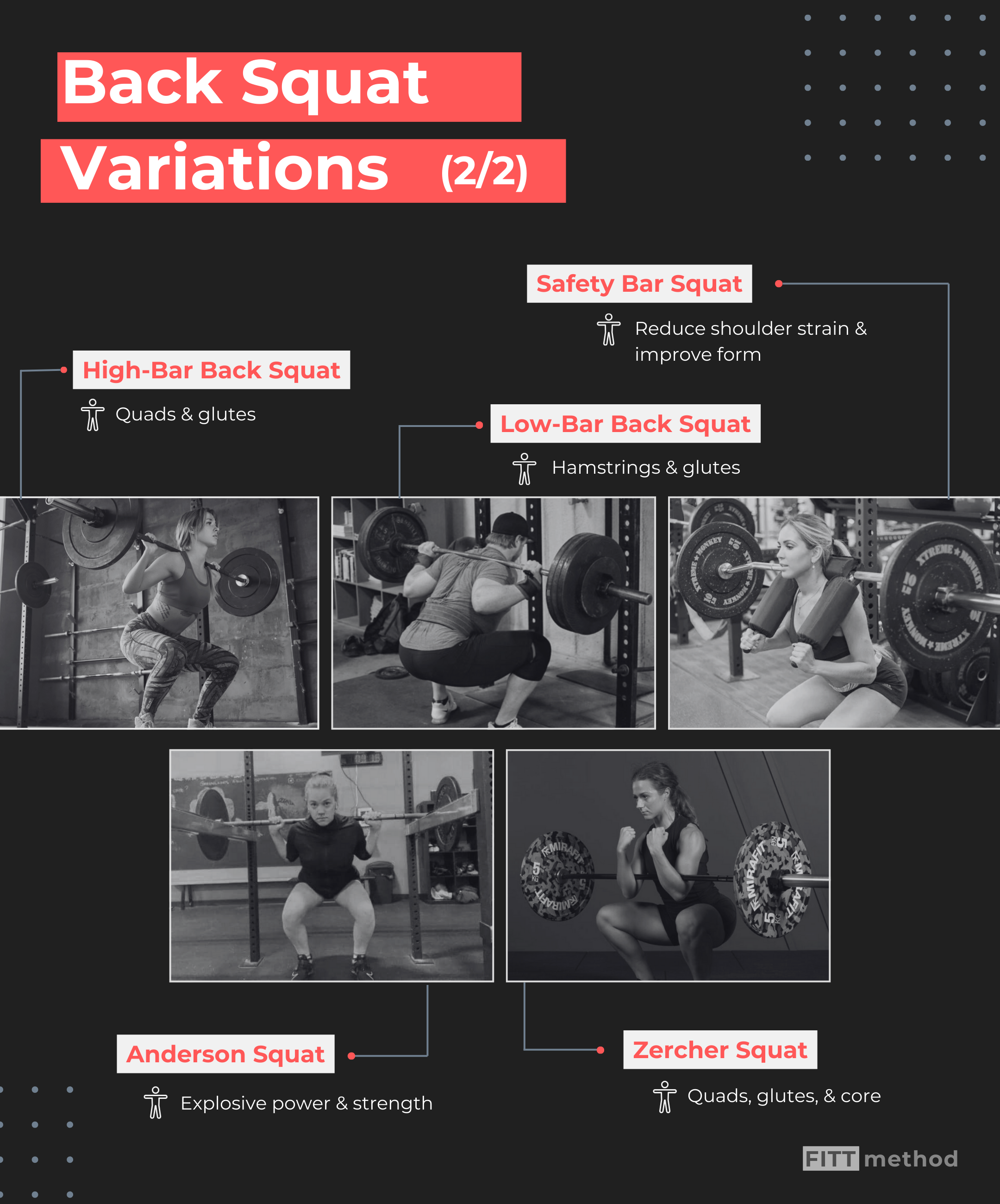 Incorporating variations of the back squat can target different muscle fibers and add variety to your workout routine.
