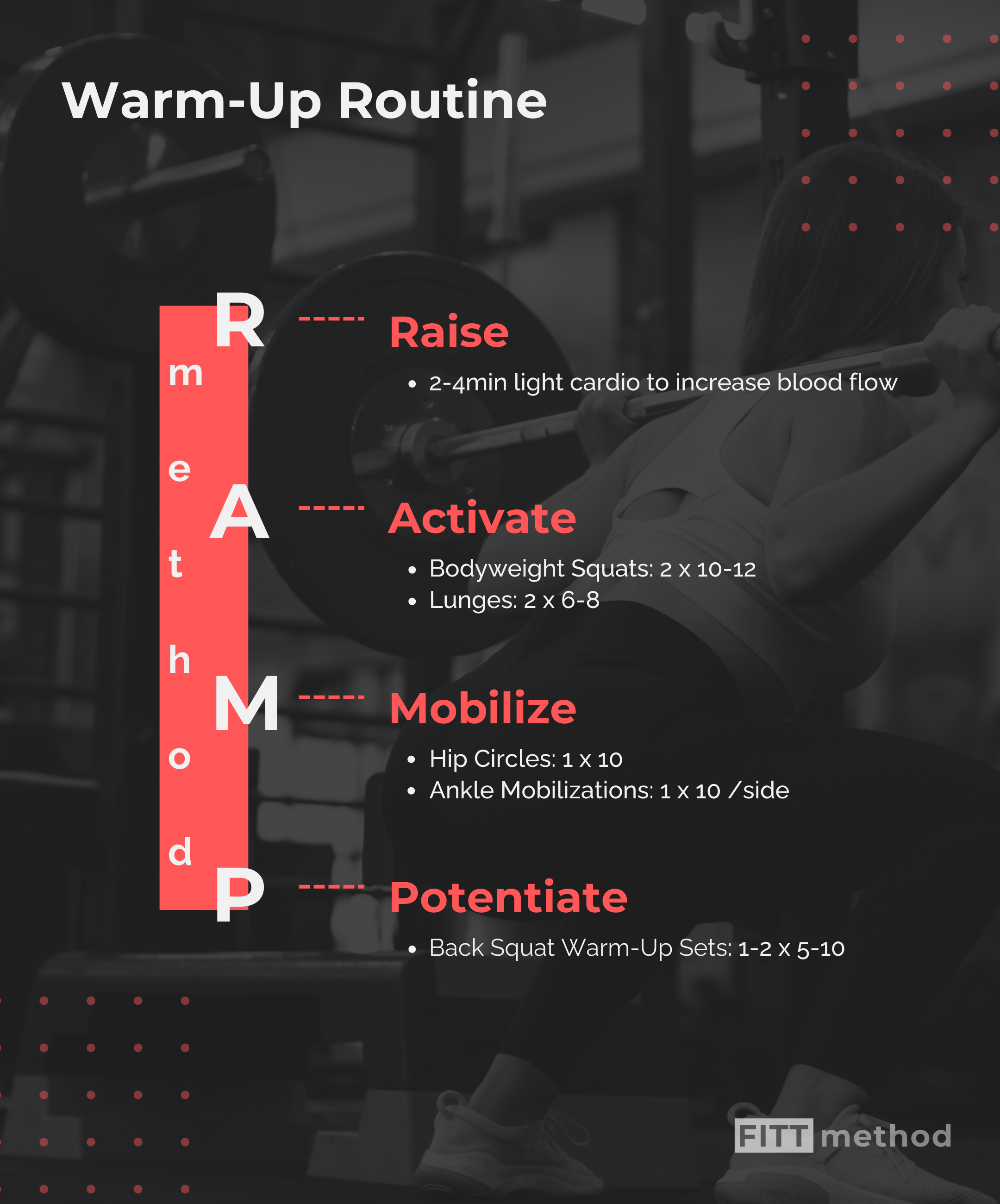 A proper warm-up routine is crucial to prepare your muscles and joints for the back squat, reducing the risk of injury and improving performance. Here’s a 15-minute protocol to get you ready.